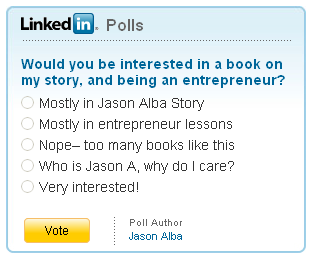 June 5th, 2009 | by Jason Alba |I have done one LinkedIn Poll before last week but decided to do another one… in the process I figured there was plenty to blog about (especially since the first step was very frustrating).