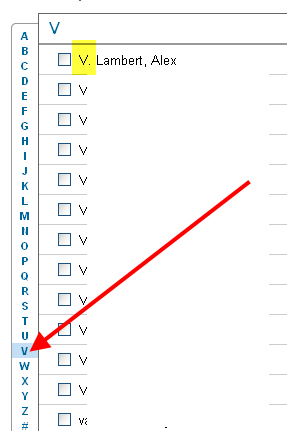 What this spammer is doing is putting the middle initial as the last name… SO, I have to go the V section to find said spammer: