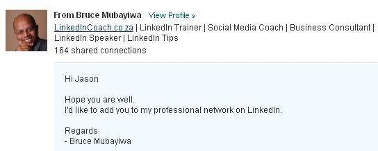 I would say this is a MAJOR win for LinkedIn… not only are people in (South) Africa signing on, and using it, but they are needing help, and Bruce seems to be the guy to help.